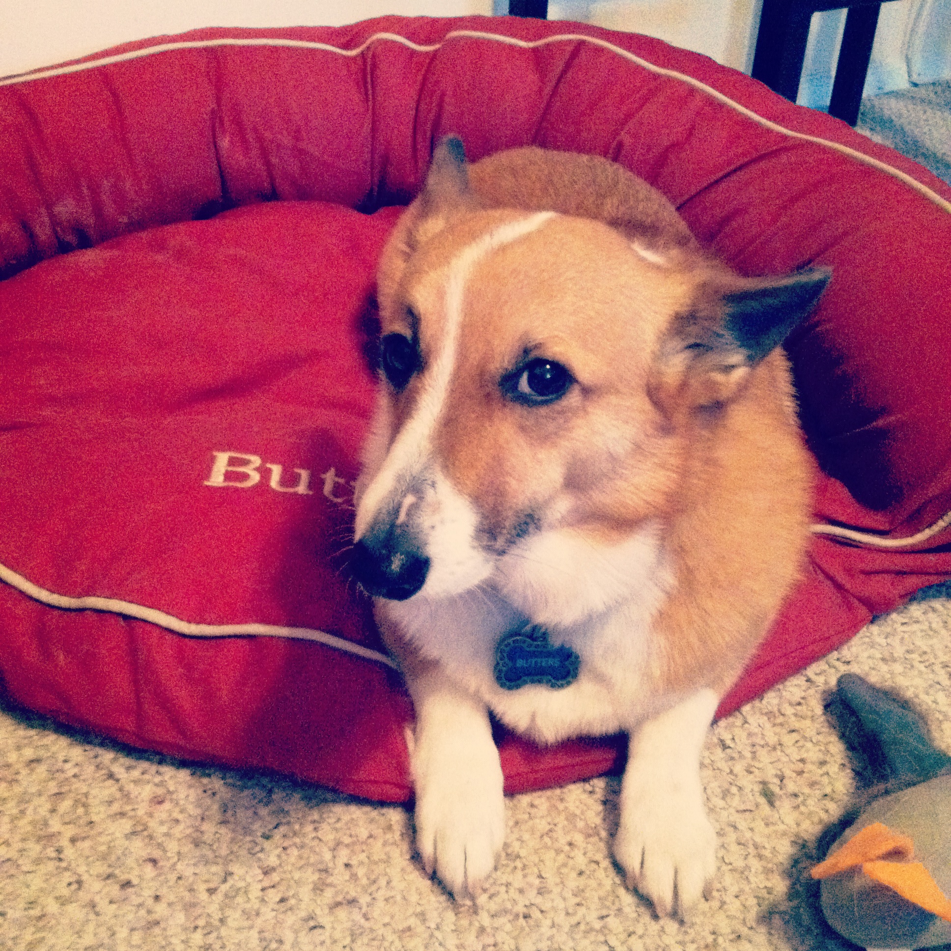 This is the story of a Welsh Pembroke Corgi named Butters. The beginning of her story has been strung together in bits and pieces, but it seems to go something like this: Butters was born to a breeder in the country and was soon thereafter promised to a young family. She got off to a rough start when her brother Peanut bit her nose — she bears the scar to this day! She was happy to go home with the family, where she thought she would run, play and snuggle for the rest of her days. All was well, but something seemed to be missing. Then, suddenly, her family went away. Butters was bewildered — had she done something wrong? Why had the family abandoned her? Butters moved to the city with a nice young man. The young man was very kind, but something still seemed to be missing. He was very busy with work and when he wasn’t working, he wanted to go out and play late at night in the big city … without Butters.